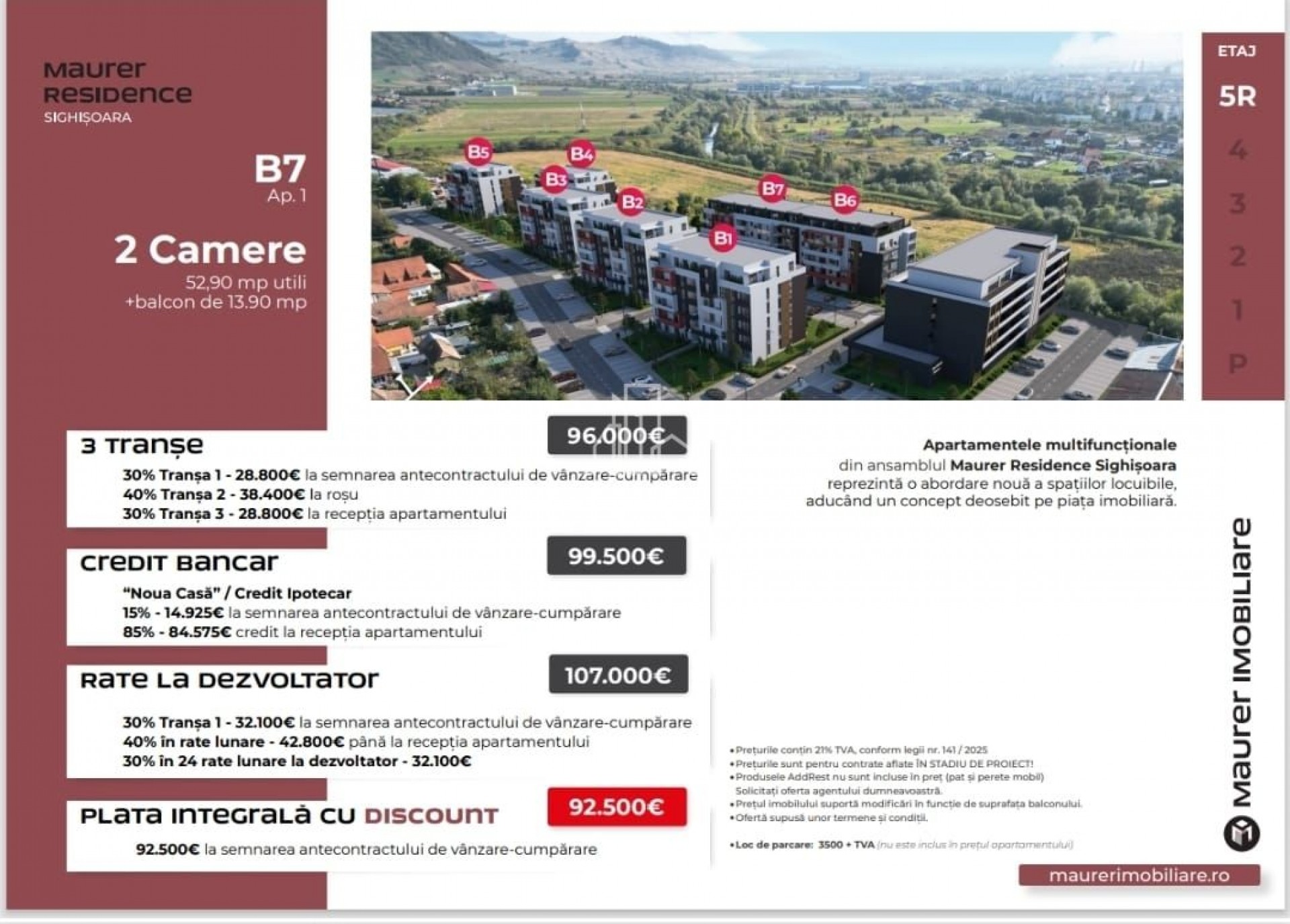 2 Rooms 2 Bathrooms Floor Parter / 5 55.3 m2 SU