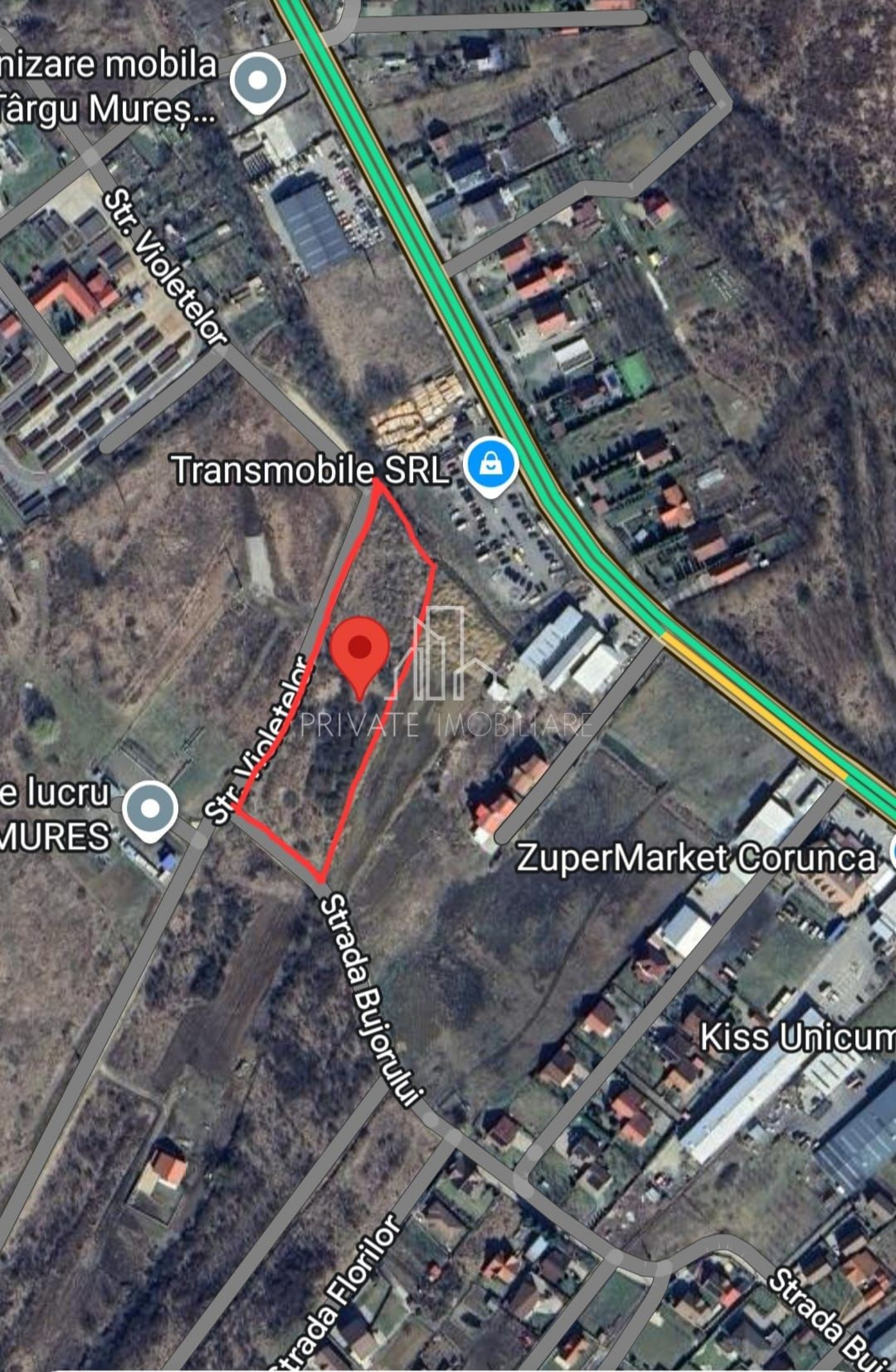 We offer for sale a plot of land located in Corunca, opening to 2 streets, Bujorului Street and Violetelor Street, in the gas station area.